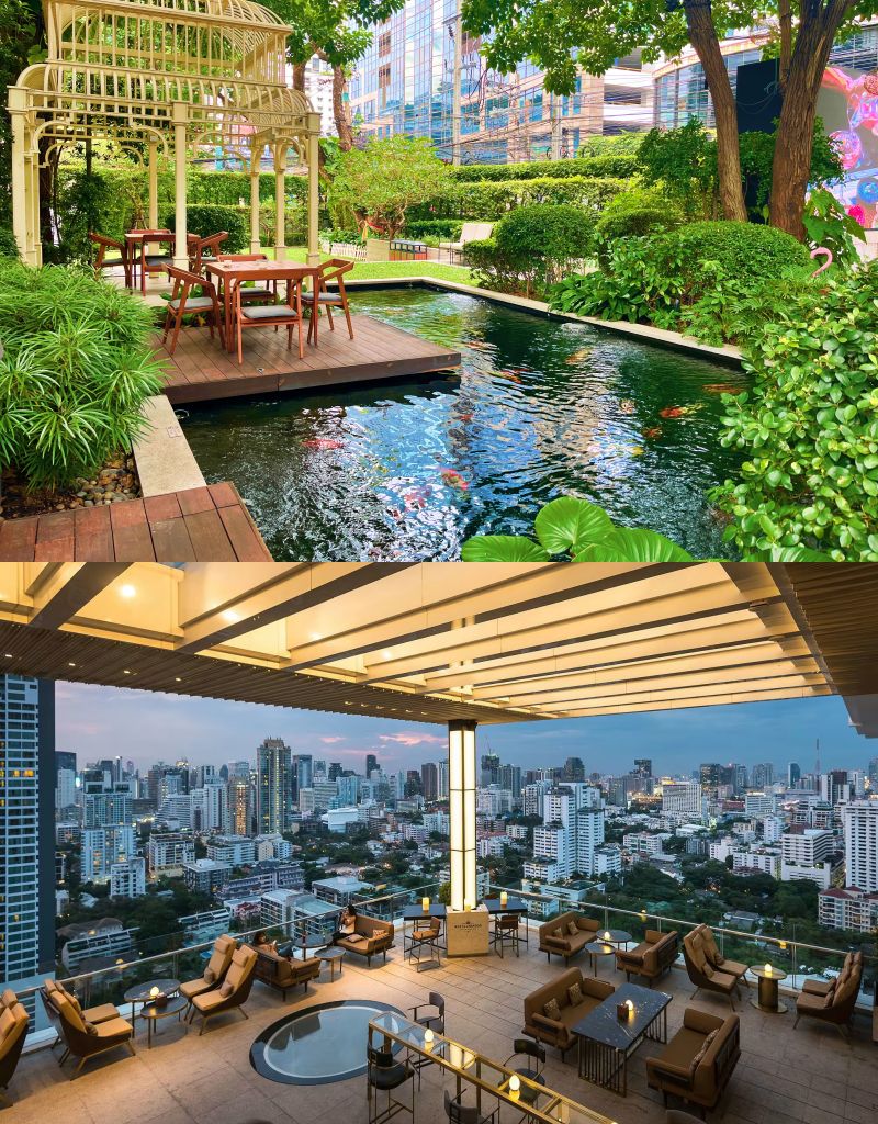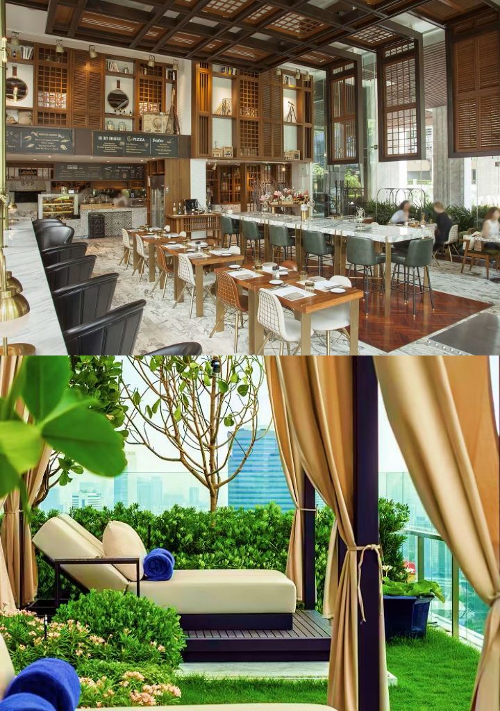 27樓NIMITR ROOFTOP BAR AND RESTAURANT餐廳及屋頂酒吧供應風味泰式料理,廚藝團隊結合家族農場、周邊地區食材與現代烹飪技藝,帶來米昂坎扇貝、泰式和牛配泰式香草蔬菜、泰式海鮮湯、龍蝦濃湯、鮭魚湯等招牌菜色,豐富了曼谷充滿活力的泰式餐飲文化。
