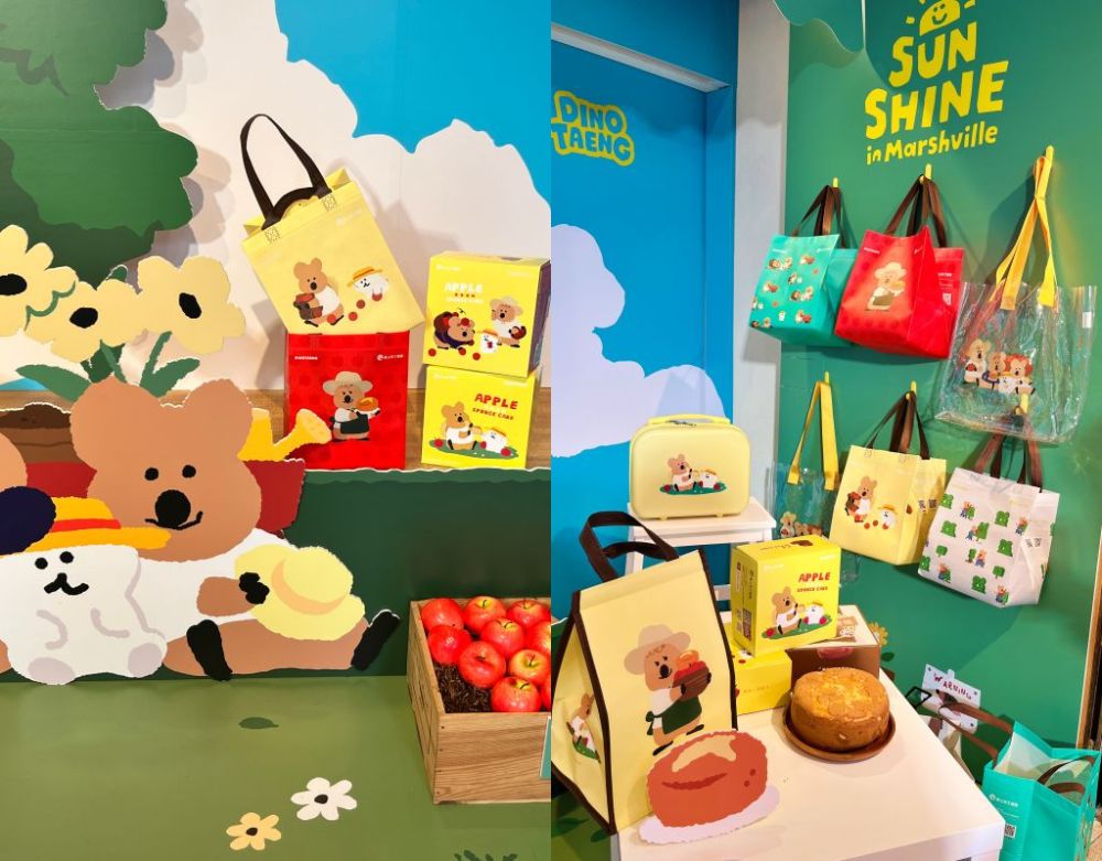 QUOKKA現身春上布丁蛋糕尋找到最好的甜點!春上布丁蛋糕攜手全球知名韓國IP DINOTAENG以尋找最棒的甜點為靈感,推出"蘋果蛋糕"及果凍袋、手提旅行箱等多款週邊。台北迪化街門市更化身為MARSHVILLE蘋果園主題區,一同共享春日甜點時光。
