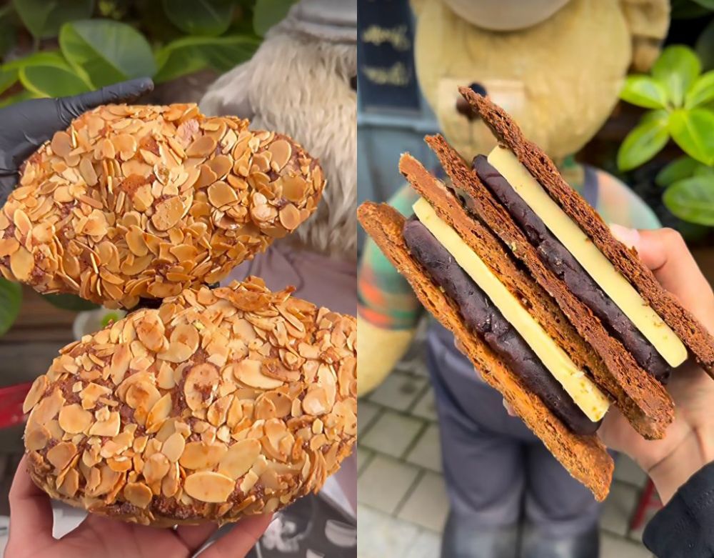 經典可頌口味選項包括杜拜巧克力、杏仁奶油、瑪格麗特、美式臘腸,”杜拜巧克力可頌”擁有華麗外型與濃郁內餡,層層酥皮包覆濃厚堅果與巧克力餡料,切開瞬間可見餡料與麵體交織豐富剖面,濃厚堅果油脂香與微苦可可風味相互平衡,濃郁不厚重,極具視覺張力外型成為韓國年輕族群熱愛的社群打卡款。