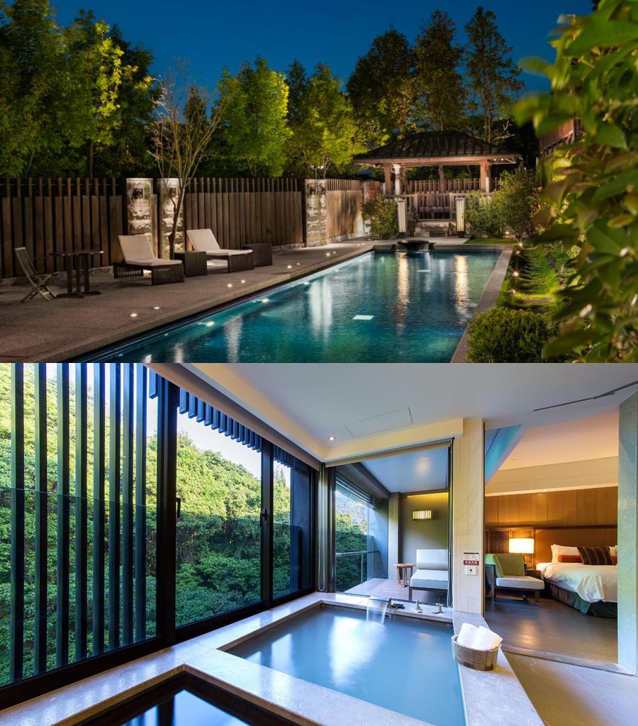 專案提供15坪以上寬敞客房空間,附設私人陽台,推開門即可置身山林環繞靜謐氛圍中,旅人可於陽台貴妃椅上自在休憩,感受春日山景帶來的放鬆時刻。每間客房皆配置冷、熱溫泉池,透過交替浸泡舒緩肌肉緊繃與日常壓力,可放鬆身心專注享受純天然泉水療癒感受。