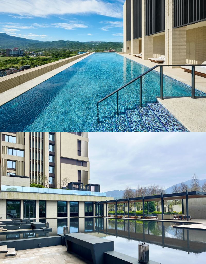 酒店設有主館與別館,別館規劃了泉曦教堂、宴會廳、無邊際恆溫游泳池、健身中心、MIST望雲&SIERRA望谷男女大眾湯及兒童遊戲休閒室。大眾湯池氤氳寫意,通透視覺設計帶來片刻愜意。頂樓無邊際游泳池沉浸在迷人山景中,享受寧靜與寫意,在湛藍天空下尋找自己的悠閒。