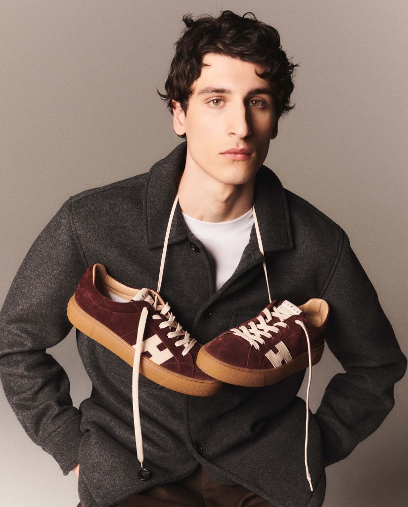 全新滑板鞋靈感運動鞋延伸至男裝系列,柔軟麂皮鞋面搭配厚實大底輪廓,展現街頭文化與經典符號交融。全新翻蓋包款造型俐落,容量充足並配備H旋扣細節;材質涵蓋粒面皮革、柔軟麂皮、羊毛皮與千鳥格紋。皮革與麂皮購物包以秋日自然景色為色彩靈感,從酒紅延伸至深灰,為整體系列注入溫潤沉穩的季節氣息。