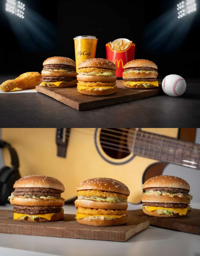 無敵大麥克以4層100%純牛肉搭配洋蔥丁,加上新鮮爽脆生菜、溫熱融化的吉事片、酸黃瓜及招牌大麥克醬,15層豐富口感征服肉食控味蕾。香鷄大麥克延續大麥克家族豐富疊層與份量飽足特色,以雙層酥炸鷄排搭配,為喜愛鷄肉者提供另一種選擇。
