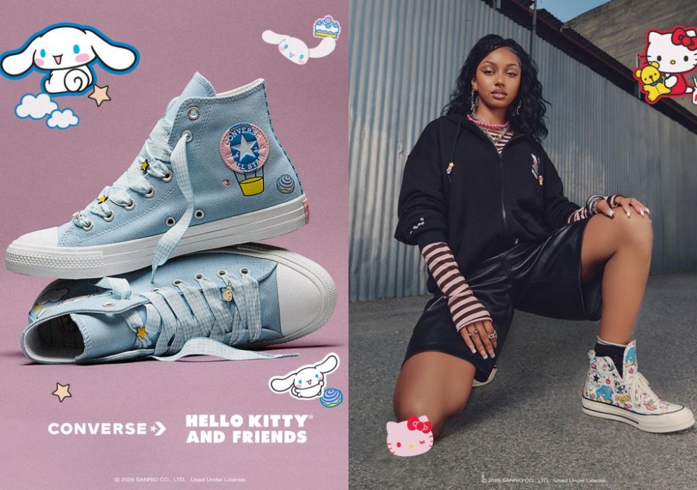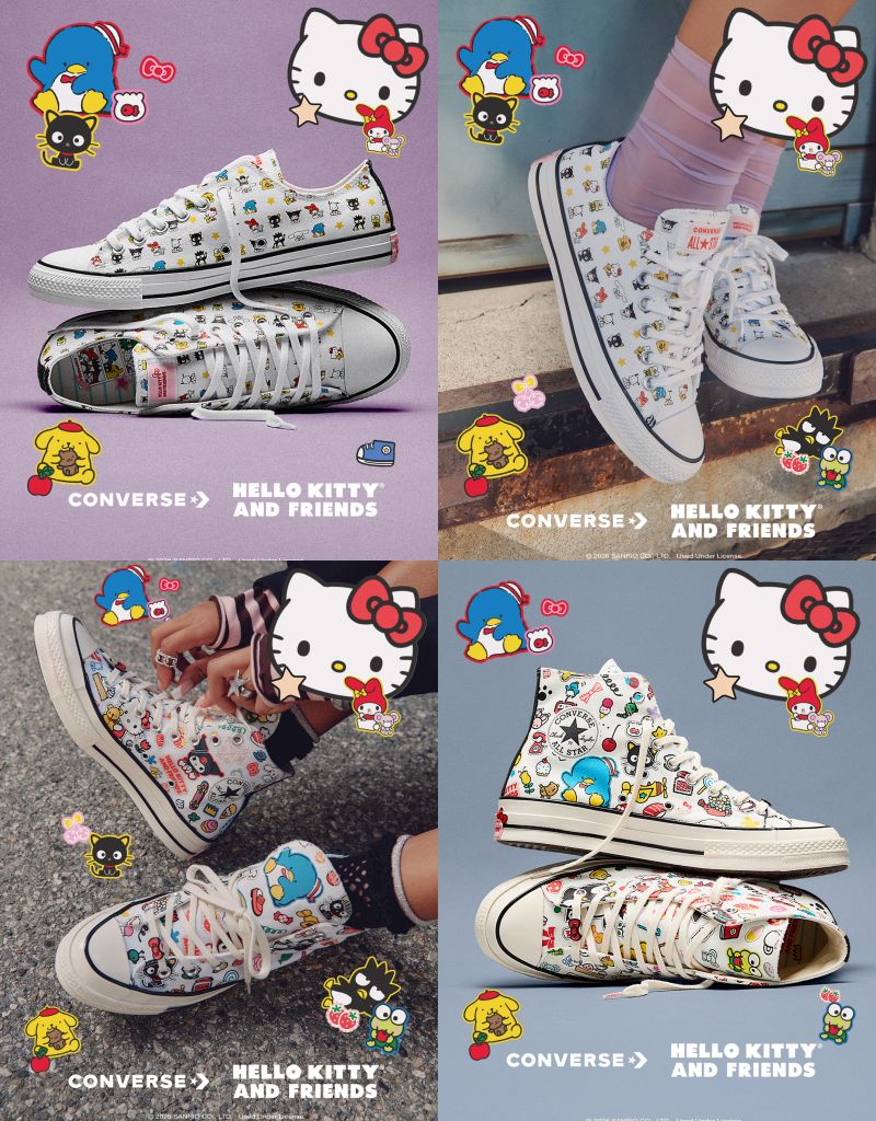 CONVERSE HELLO KITTY AND FRIENDS聯名系列從摯友間的玩趣日常中汲取創作養分,將標誌性可愛元素融入鞋款與服飾設計,以繽紛多元創意表達,邀請各年齡層的粉絲一同加入這場歡樂聚會。