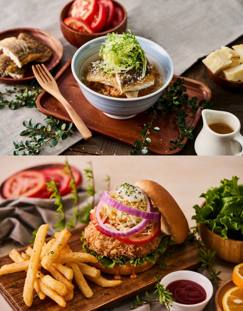 “香煎鱸魚茄汁湯丼飯"正式回歸,香煎至金黃的鱸魚外酥內嫩,搭配蕃茄、洋蔥與培根慢火熬煮的茄汁湯底,酸香中帶著自然甘甜,與野菇香氣層層交織,風味圓潤飽滿,層次分明細膩,每口都能品嚐到鱸魚的鮮美與蕃茄的酸甜。