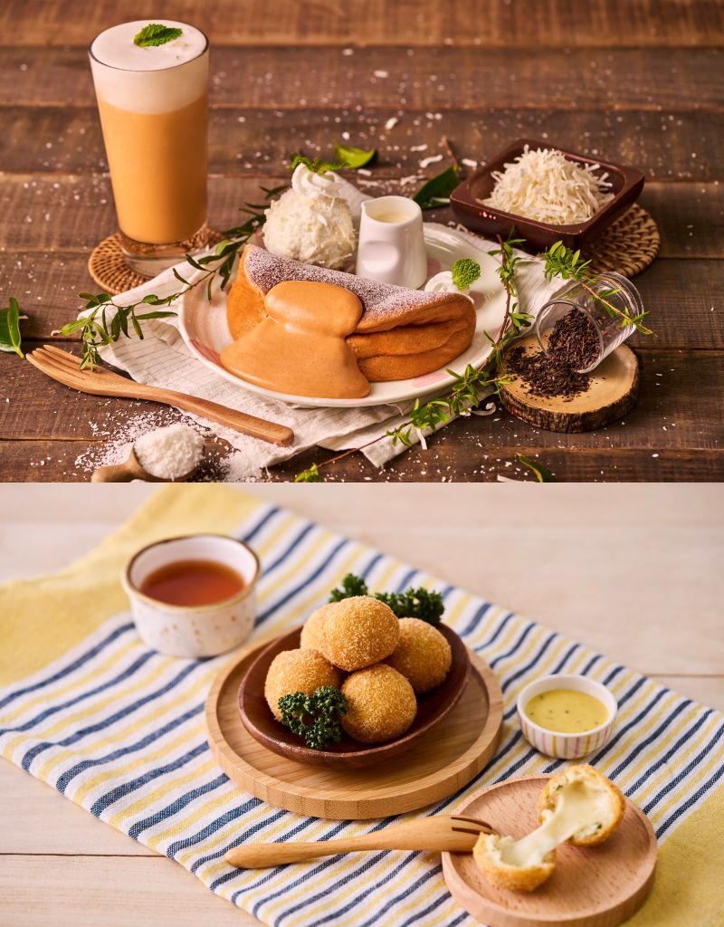 “泰奶椰香冰淇淋鬆餅"將馥郁泰式奶茶揉合香甜煉乳融入鬆餅,入口溫潤柔滑;淋上泰奶與牛奶安格斯醬,奶香與茶韻細緻交織,層次豐富卻清爽不膩。搭配椰奶冰淇淋與椰子絲點綴出淡雅椰香,風味層層堆疊,保留經典靈魂,也添入春季輕盈氣息。