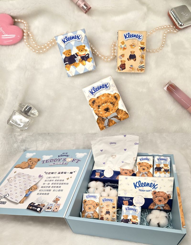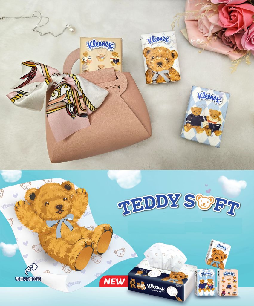 同場加映,舒潔推出全新”舒潔TEDDY SOFT小熊印花”面紙系列,把可愛徹底發揮到極致,外包裝可愛,連面紙本身都可愛,每一抽都有Q萌小熊印花,每次使用就令人心臟爆擊,瞬間被滿滿療癒幸福感包圍!