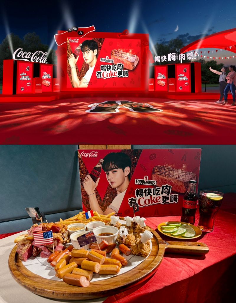 第2屆COKE!暢快嗨肉祭由BTS成員V(金泰亨)擔任可口可樂品牌大使,現場設有寵粉專屬V型入口長廊意象,設置滿滿BTSV視覺裝置巨型燈箱,營造吸睛、震撼沉浸式體驗,完成指定任務可兌換V限量獨家周邊,結合音樂、潮流與美食,打造全台最受矚目暢快美食盛會。