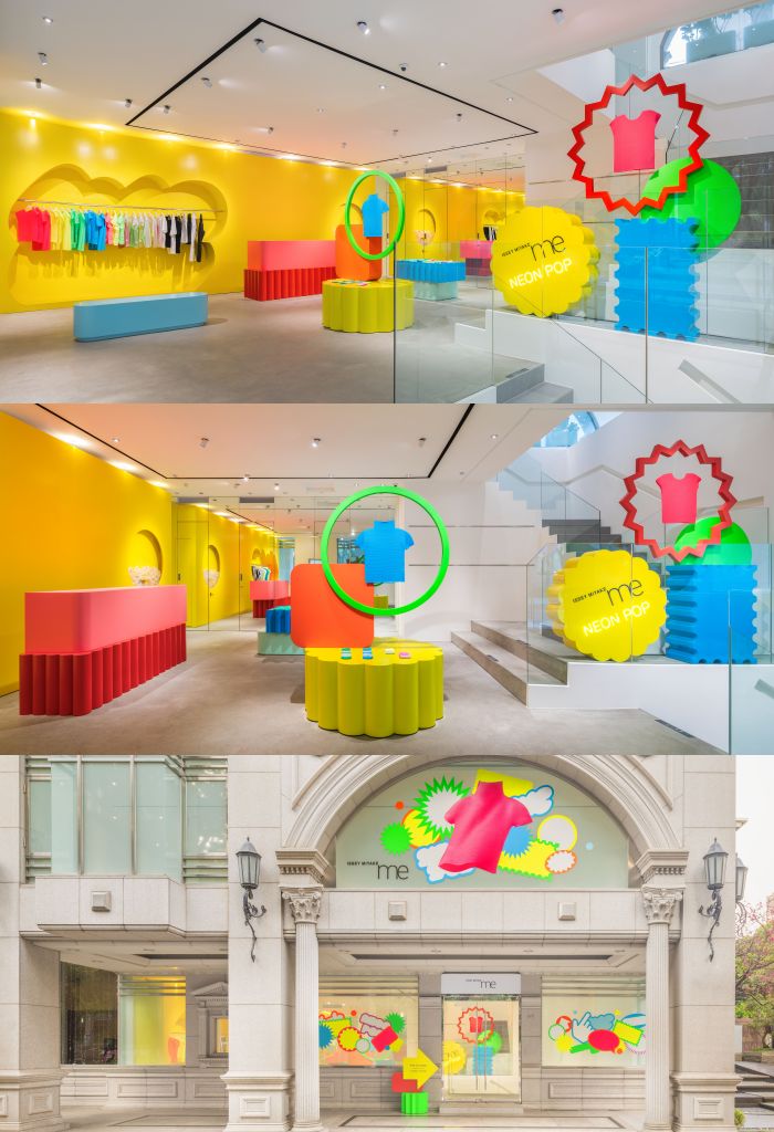 NEON POP UP以搶眼的視覺為靈感,運用螢光色與幾何圖形打造高辨識NEON展覽空間,呈現me ISSEY MIYAKE輕盈、活力且貼近日常特性,NEON巨型扭蛋機出沒,NEON快閃店限定商品只有在NEON POP買的到。