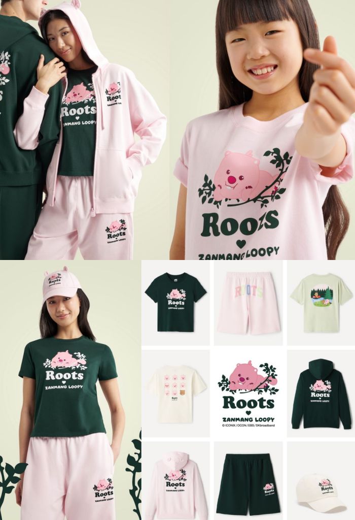 ROOTS╳ZANMANG LOOPY聯名系列受大自然啟發,每款設計皆結合ZANMANG LOOPY標誌性粉紅色調與ROOTS靈感源自大自然森林、木屋、湖泊圖樣,為日常穿著帶來輕鬆且充滿活力的春季美學,兼具高品質與舒適度 。