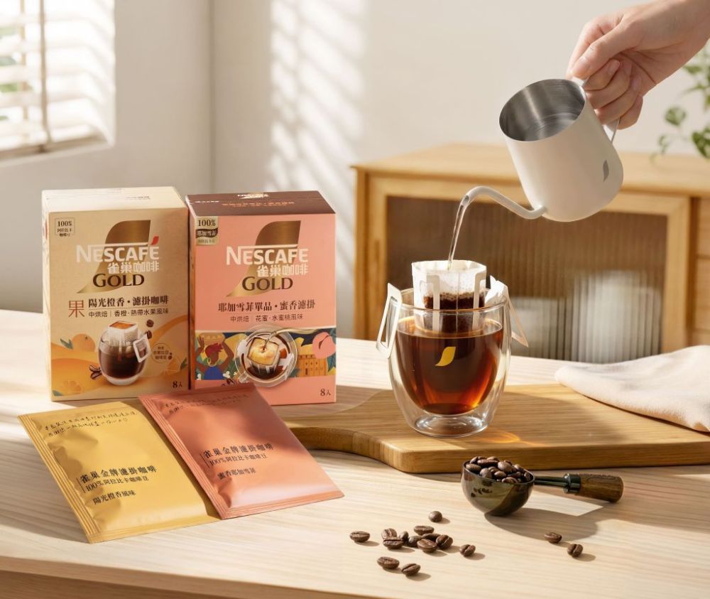 NESTLÉ雀巢咖啡推出金牌濾掛咖啡系列"單品耶加雪菲"及"陽光橙香"2款新品,在家也能品嚐產地豆的風味,將繁瑣手沖流程濃縮在一撕一拉之間,讓精品級咖啡細膩美學真正走入日常生活!