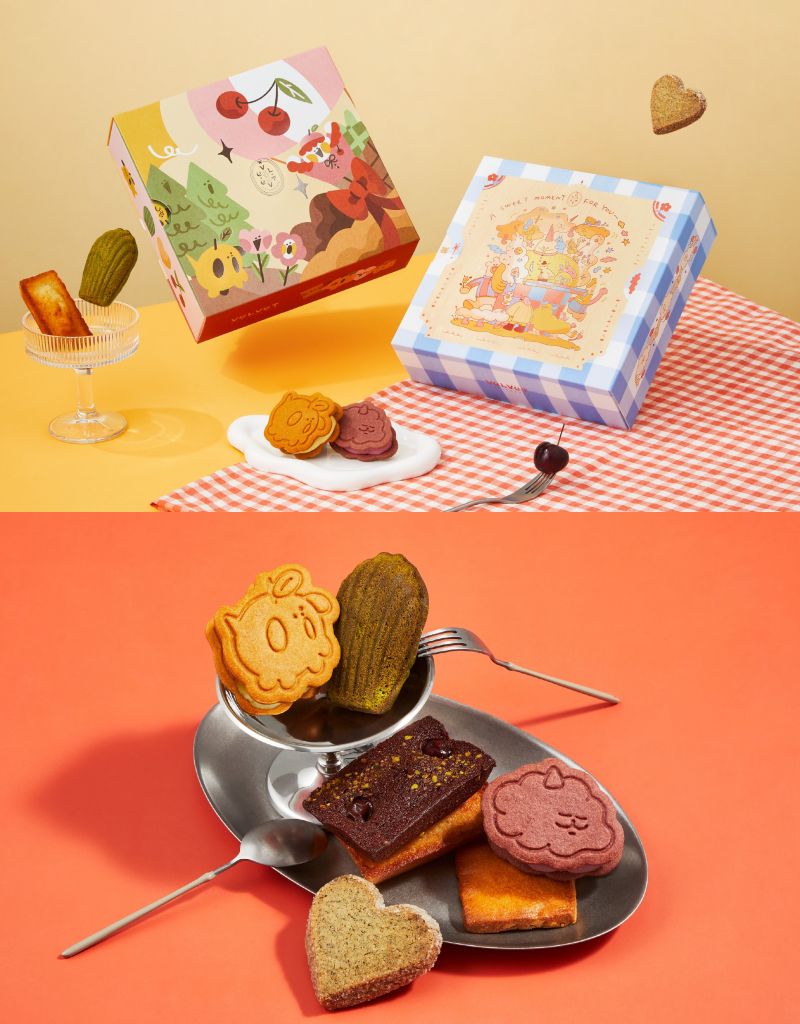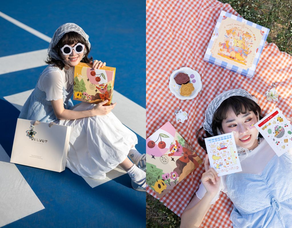 VELVET PATISSERIE法絨法式手工甜點與台灣新生代插畫家草棉谷、陳橋以”送禮進行式"為主題,結合視覺設計與甜點創作,推出2款春季限定療癒系禮盒與水果風味夾心餅乾,呈現兼具美感與風味春季甜點提案。