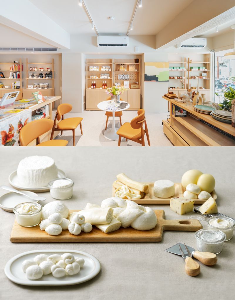 飲食研究者楊馥如與作家HALLY CHEN親自策劃選書,為空間注入知識的厚度。並定期開設手作起司料理體驗課”起司小學堂”,讓這裡成為一個可以吃、可以選、也可以慢慢讀的所在,成為打造台灣起司N+1種生活提案的實踐場域。