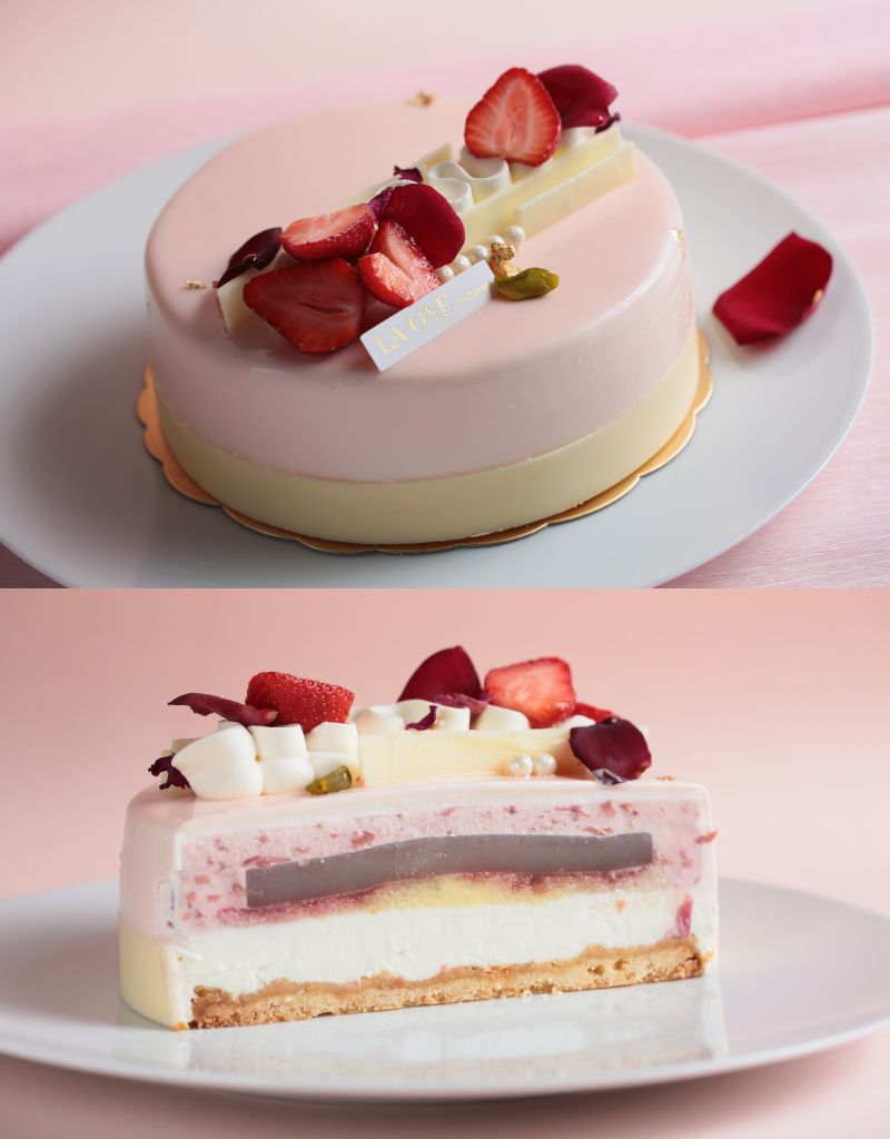母親節蛋糕設計回歸”人與土地的連結",延續從產地到餐桌理念,選用高雄杉林有機玫瑰、彰化花壇茉莉花茶等台灣特色食材,層層堆疊出細膩鮮明風味結構,展現台灣花果風味細緻平衡,將花的香氣轉化為可品嚐的甜點語言。