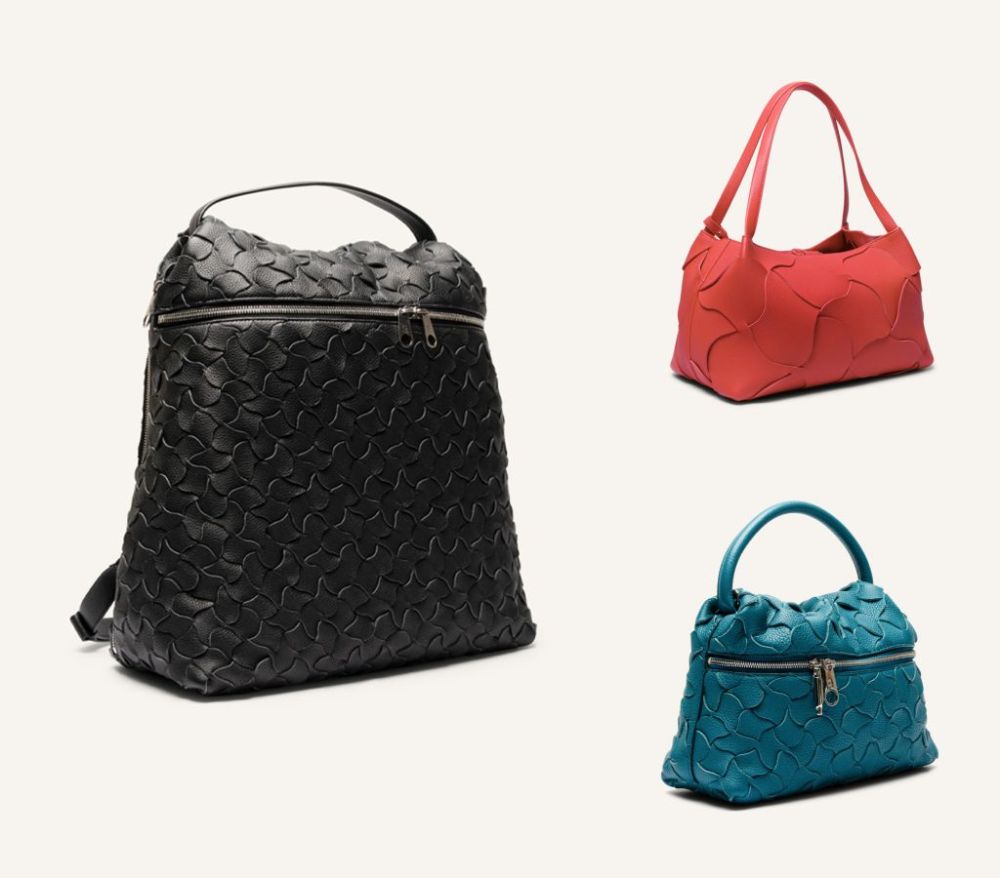 全程採純手工編織,師傅以精準斜向編織手法創造猶如真織布般質感,細緻耐用,亦展現TESTONI對材質詮釋的創新與極致追求。WIZARD黑色手工編織後背包、純白或孔雀藍手提包、ENZO紅色托特包充滿活力,皆展現皮革工藝與自然線條深度對話 。