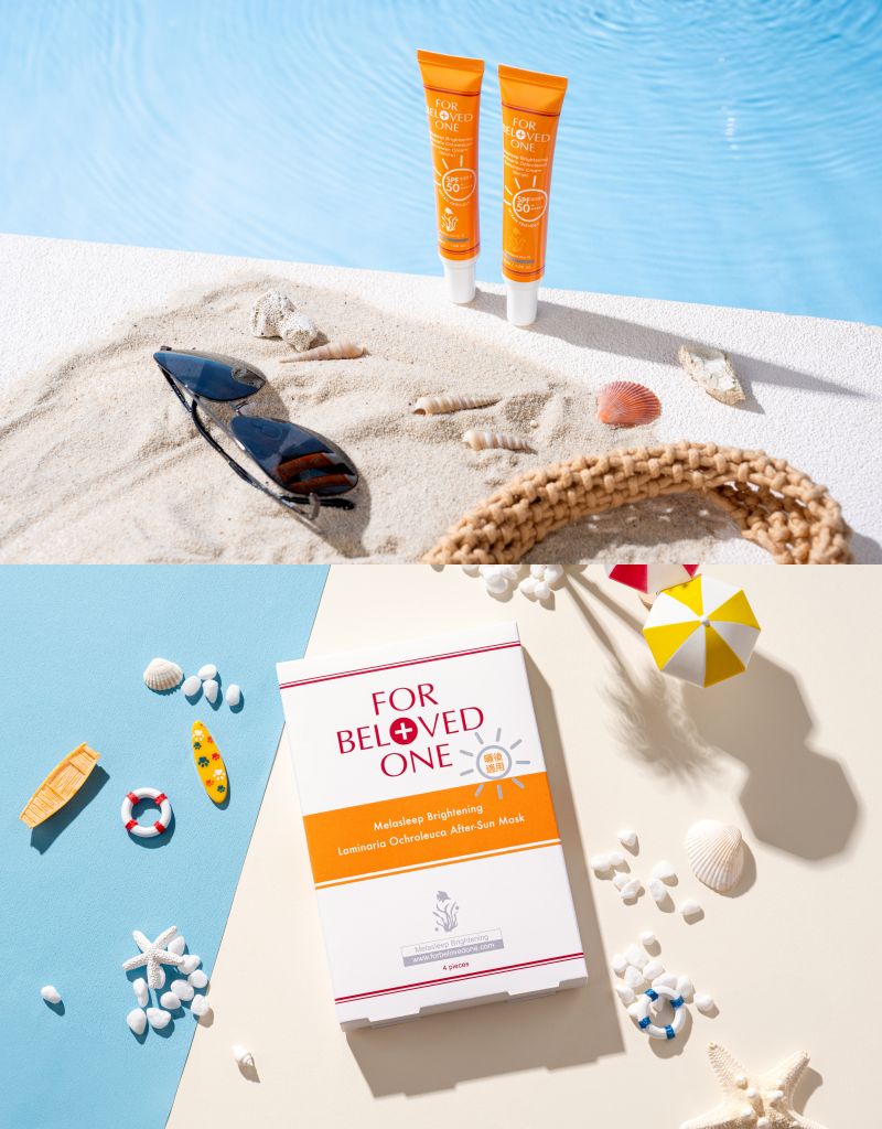 FOR BELOVED ONE寵愛之名以黃金藻為核心成分,建立一套早P晚R日間防護╳曬後修護完整保養路徑:白天透過高效防護與養膚型防曬穩定肌膚狀態,夜晚透過曬後面膜集中修護與舒緩補水,提供清爽無負擔的全日防護。