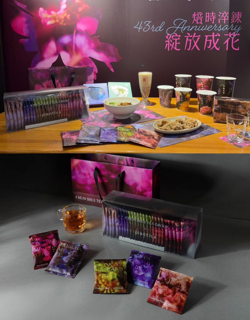 春水堂43生日慶以花藝美學為主題,攜手日本花藝設計plantica推出聯名紙杯與限量周邊商品,將花藝設計美感融入生活日常。同時規劃4款"花映套餐",打造兼具視覺與味覺用餐體驗。