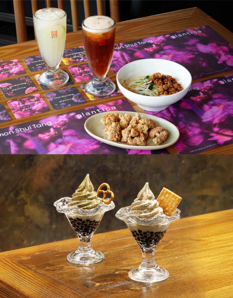 春水堂╳plantica聯名將plantica花藝設計融入6款紙杯與杯墊、2款餐墊紙,在用餐時刻也享有視覺與味覺美好體驗。同步推出綜合茶禮盒、玻璃杯組、購物袋及雙杯提袋等聯名周邊商品,讓花藝元素從餐桌延伸至生活日常。